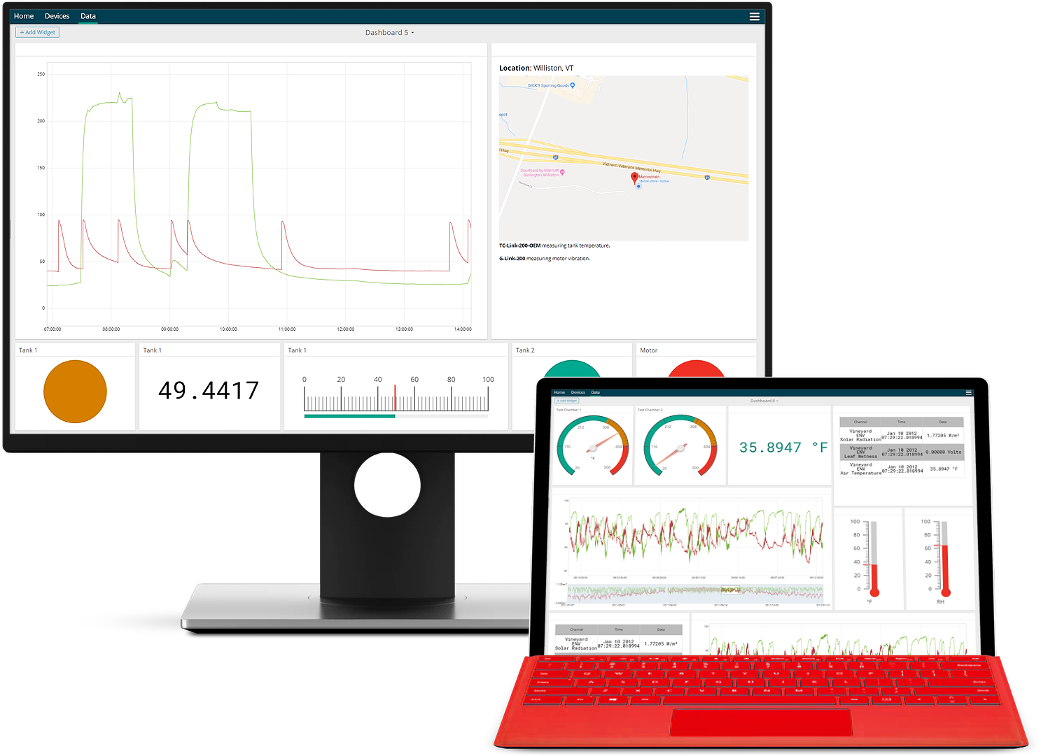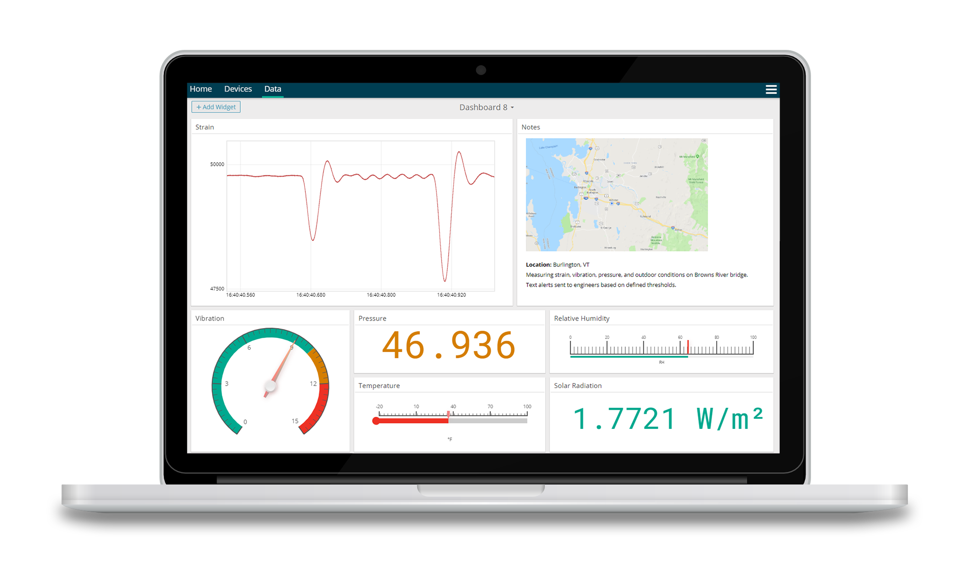 Familiar with MicroStrain's desktop software, SensorConnect? You'll feel right at home with SensorCloud. We develop the two together, so you can have a consistent tool no matter the situation. You can even log in to your SensorCloud account from within SensorConnect, and view your local and cloud data in the same Dashboard!